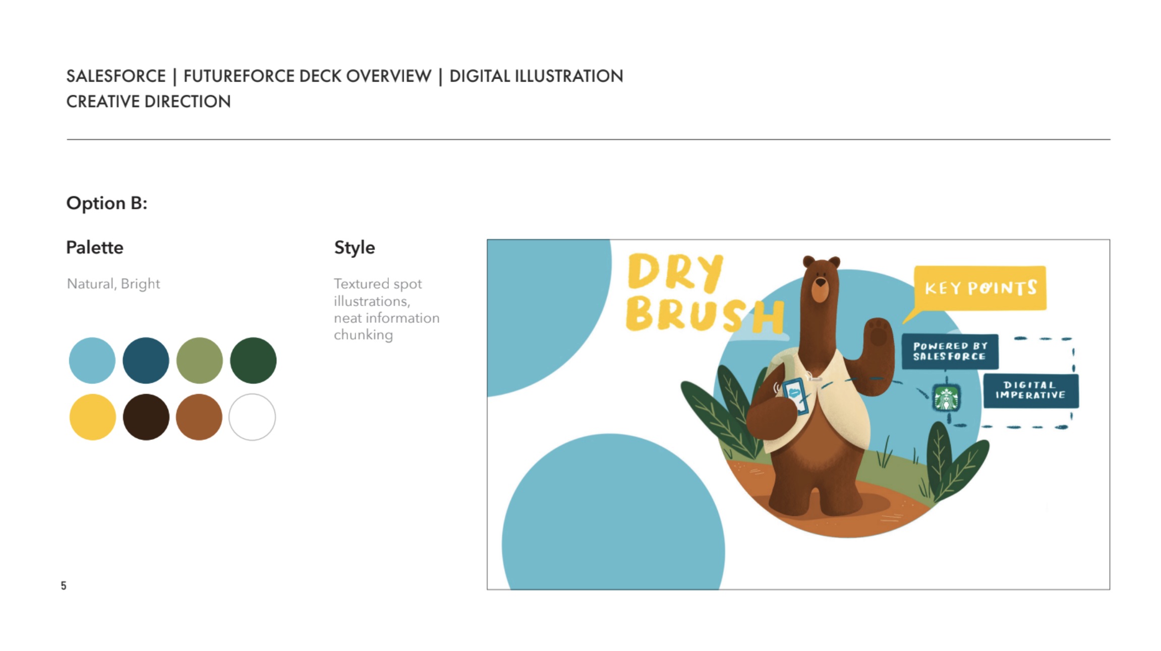 You may have seen these specific Salesforce mascots out-and-about in the world of Salesforce advertising. We had the opportunity to reimagine and illustrate these existing characters to highlight key points along the journey. Kodiak the bear is definitely proud off his #1 CRM status.